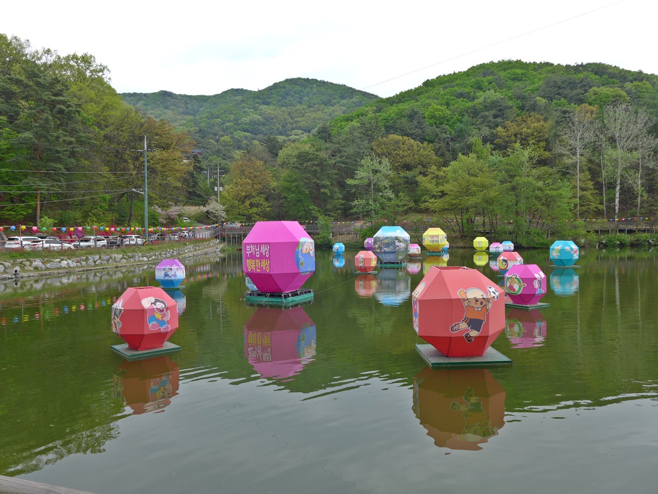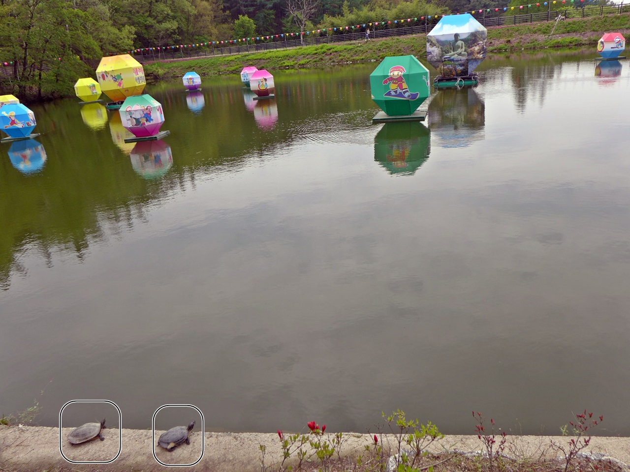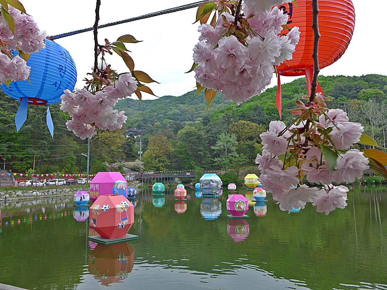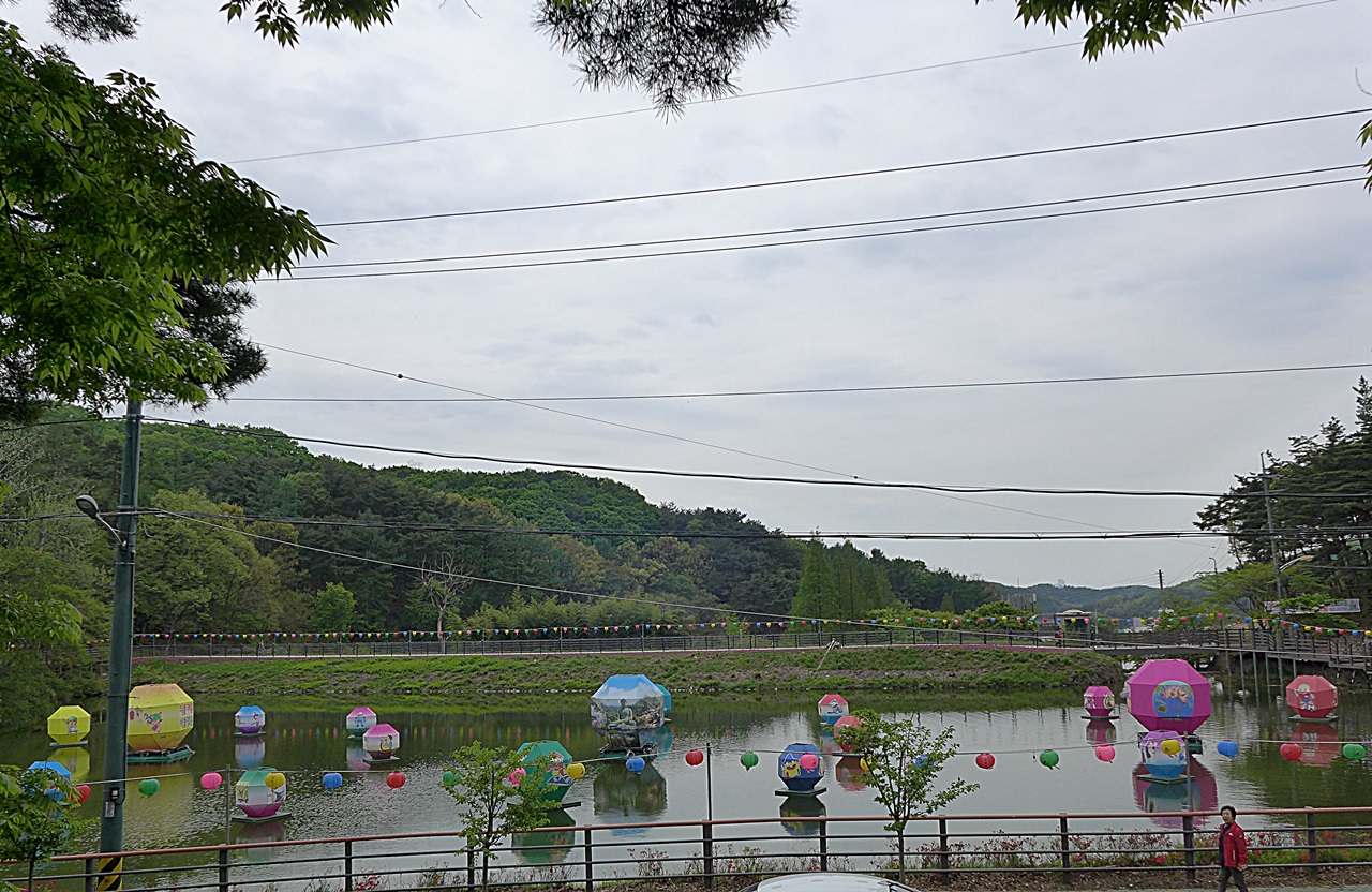 각원입구 연못에는 연등을 띄워 그비경도 아름답지만 까만밤 유등은 더욱 예쁘며