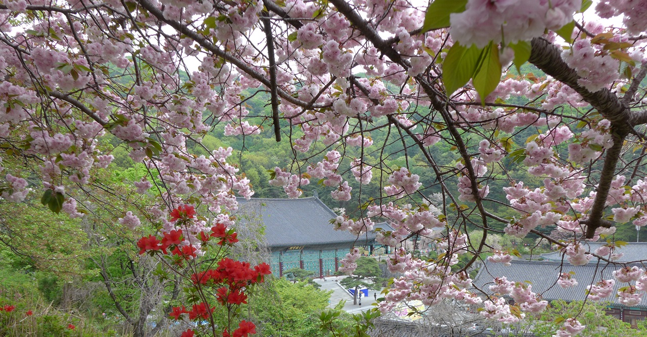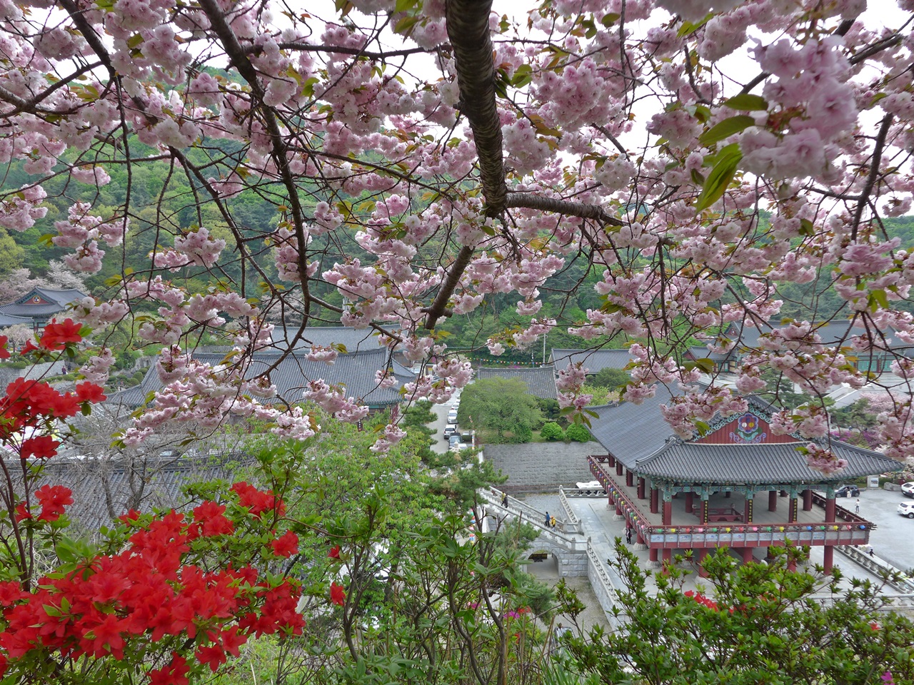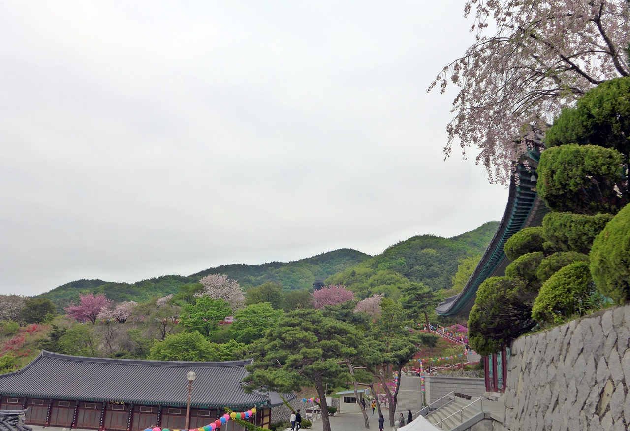 요즘은 천불전,삼신각 앞에는 능수벚꽃이 장관을 이루고 좌불상앞에는 왕벚꽃이 너무너무 예쁘고 장관이여서