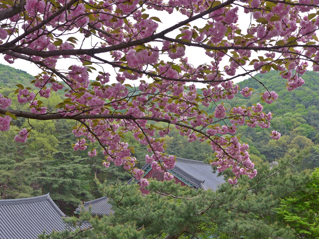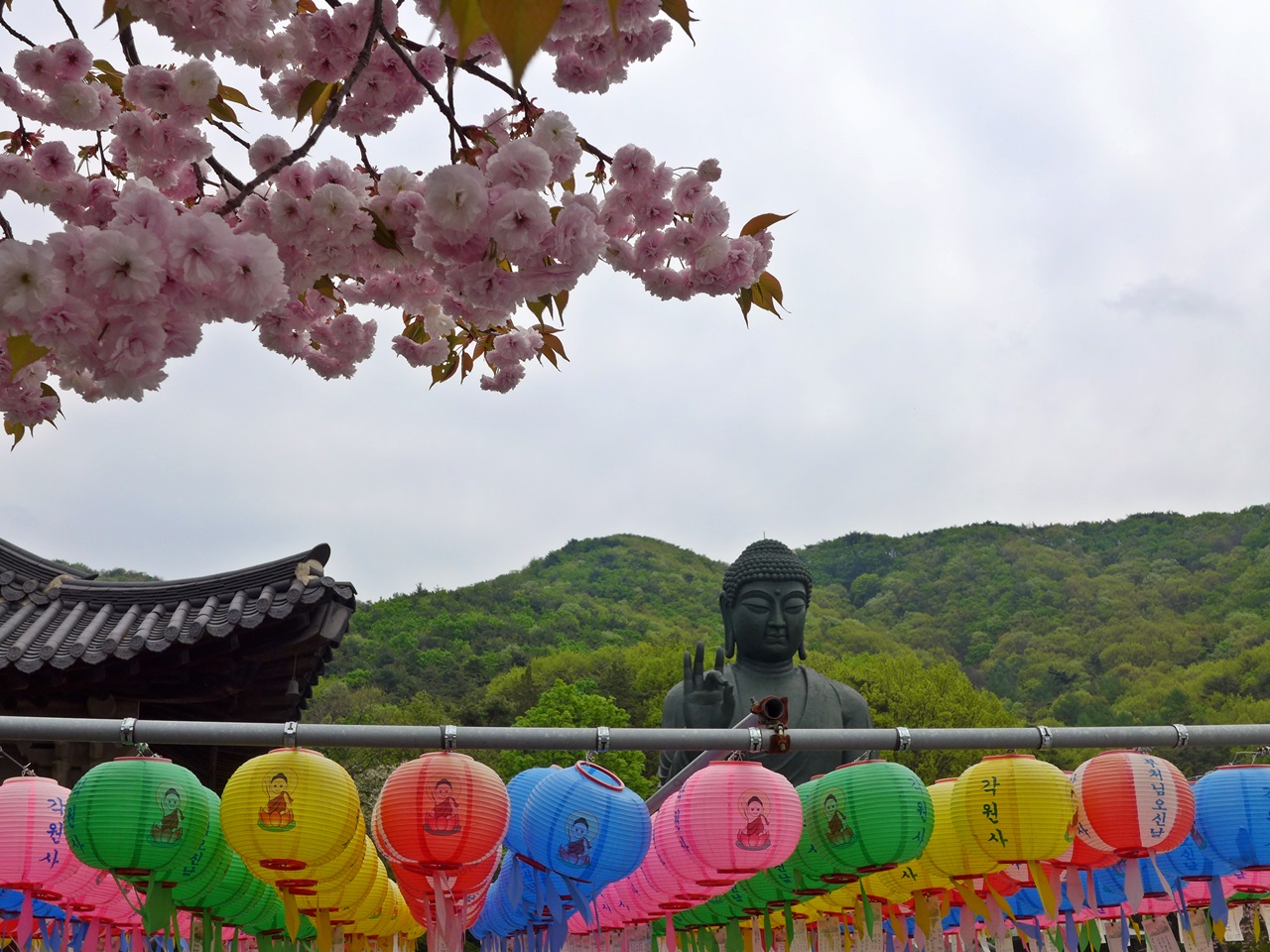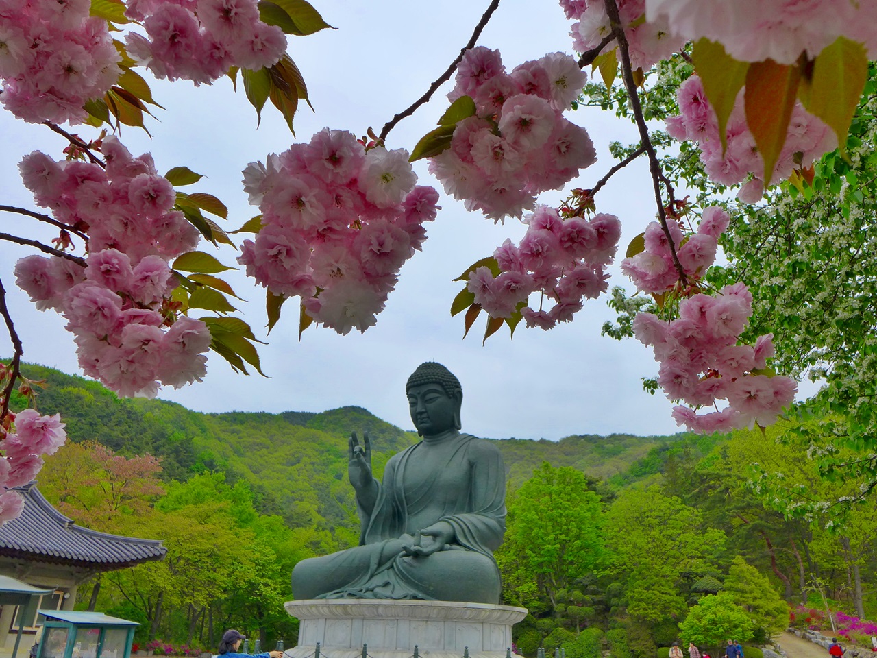 요즘은 천불전,삼신각 앞에는 능수벚꽃이 장관을 이루고 좌불상앞에는 왕벚꽃이 너무너무 예쁘고 장관이여서