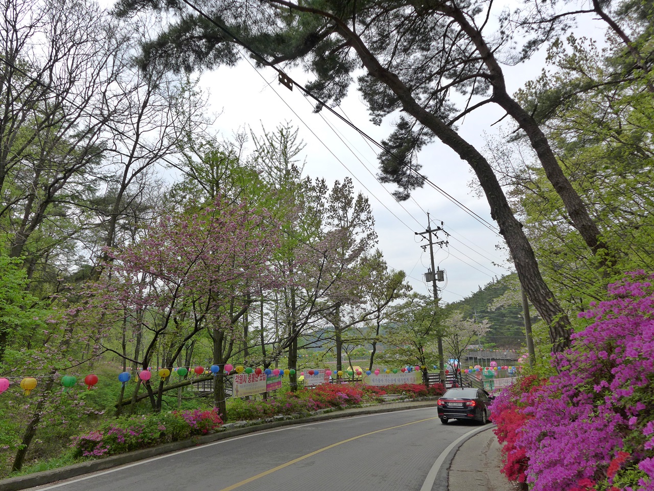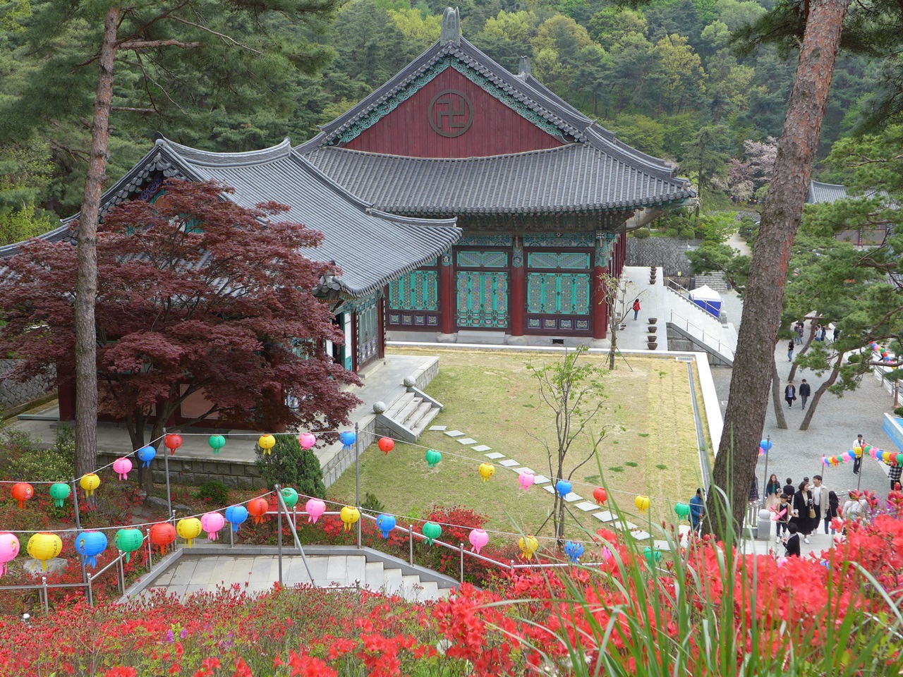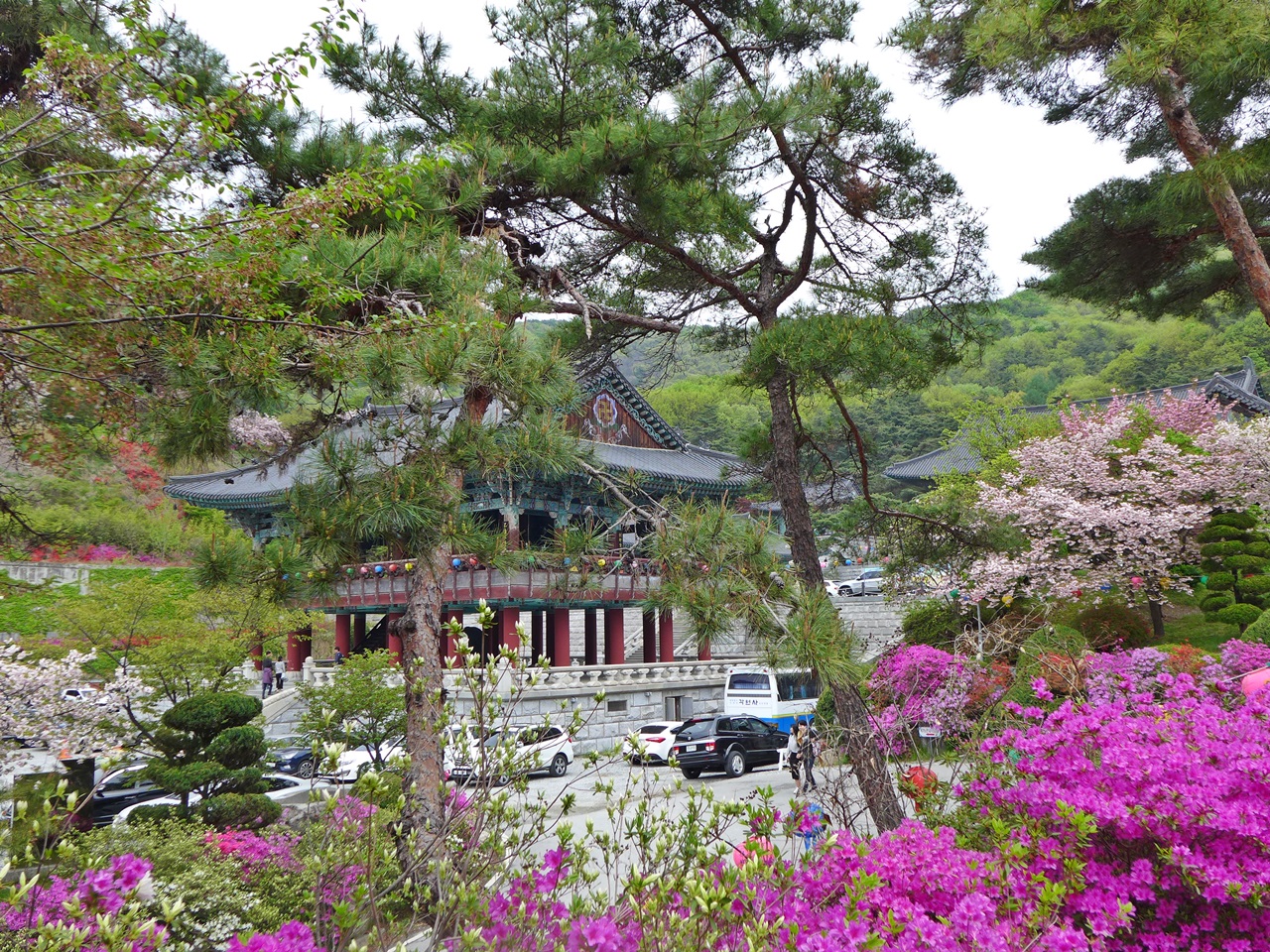 청동대불전 올라가는 203계단도 운치있고, 색색의 연산홍 역쉬 장관을 이루지요